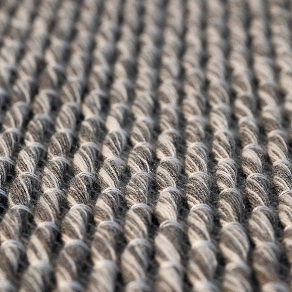 Realizzato interamente in Italia dalla tessitura sarda Mariantonia Urru, il tappeto per interni ed esterni grigio Stone 100x200cm è ecosostenibile ed è fatto   con un mix di filati riciclati Raytent®, provenienti dagli scarti di lavorazione della tenda da sole.